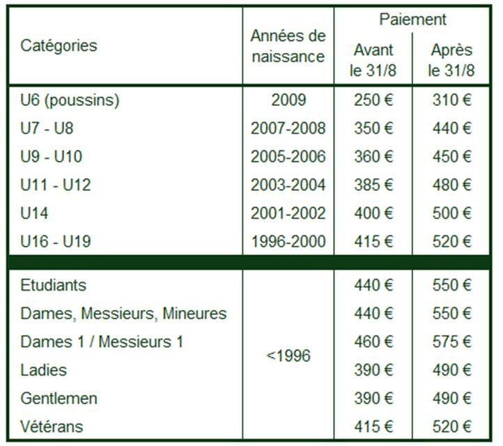 - Si un membre joue dans une catégorie supérieure ou inférieure à celle de son année de naissance, il doit s'acquitter de la cotisation correspondant à son année de naissance.